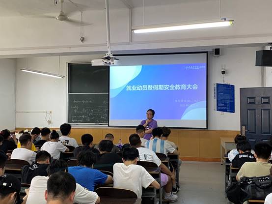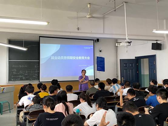 6月25日下午,Beat365唯一官方网站信息与计算科学专业大三年级全体学生于南楼307参加就业动员暨假期安全教育大会,会议由学生管理科科长李扬老师主持。