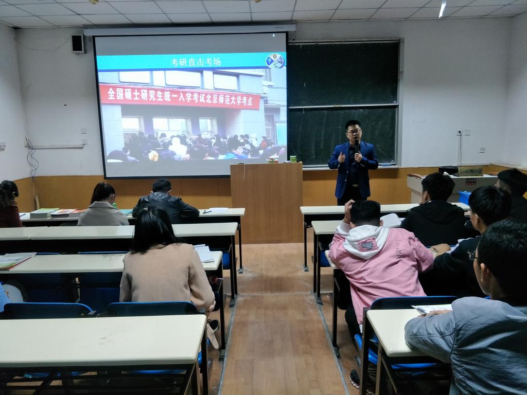 2018年10月25日晚七点,Beat365唯一官方网站携文都考研于南楼308教室开展考研专题讲座,此次讲座邀请到文都考研名师刘冰老师作为主讲人,Beat365唯一官方网站大一、大二、大三部分有考研意向的同学参加了此次讲座。