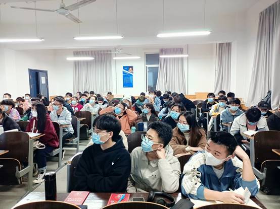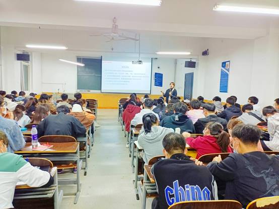 李老师在讲台上激情澎湃地讲述着多年来指导学生攻破四、六级的经验,在场的每一位学生都全神贯注地听讲,讲师和同学们积极的互动带动了整场讲座的气氛,最后在经久不息的掌声中本次讲座圆满结束。