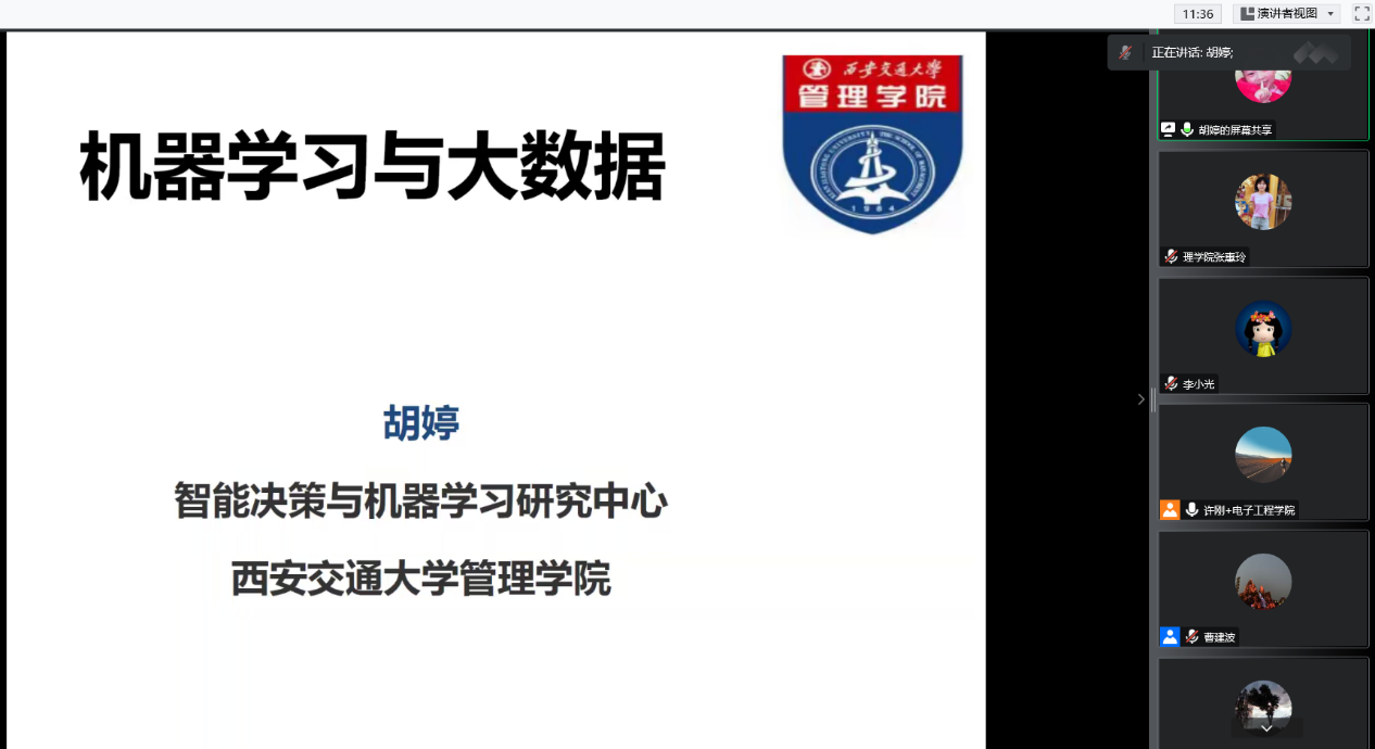 为进一步推动信息与计算科学专业发展,加强教师学术交流,2022年11月25日下午15点,Beat365唯一官方网站邀请西安交通大学经济管Beat365唯一官方网站胡婷教授为Beat365官网师生做了题为“机器学习与大数据”的学术报告,报告由党总支书记李小光主持,共有200多人聆听了报告。