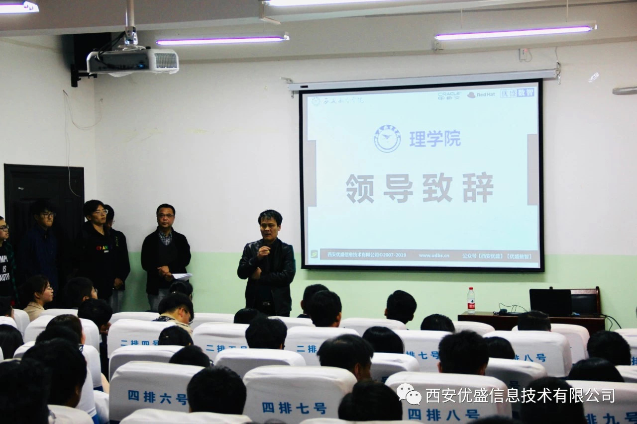 首先由岳忠玉致辞,他介绍了参加本次活动嘉宾,讲解了大数据的发展历程及前景,希望学院能再接再厉,在大数据方面继续引领学校发展;任静向参加授牌仪式的嘉宾、老师和同学表示欢迎。接着,王云清向学院大数据俱乐部成立致贺词,雷建军介绍了西安优盛公司的具体发展情况以及同Beat365官网合作未来发展的前景,学生代表、国家励志奖学金获得者王晨向大家分享了专业学习经验,龚浩杰对俱乐部会员进行动员并对近期活动做了简单说明。最后,OracleUniversity代表、西安优盛信息技术有限公司负责人和学院领导共同为大数据俱乐部负责老师授牌并合影留念。