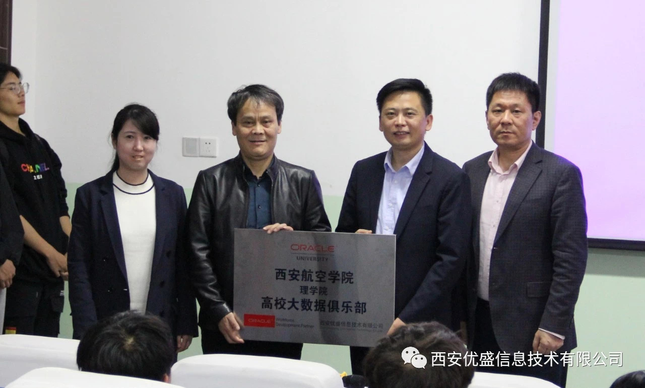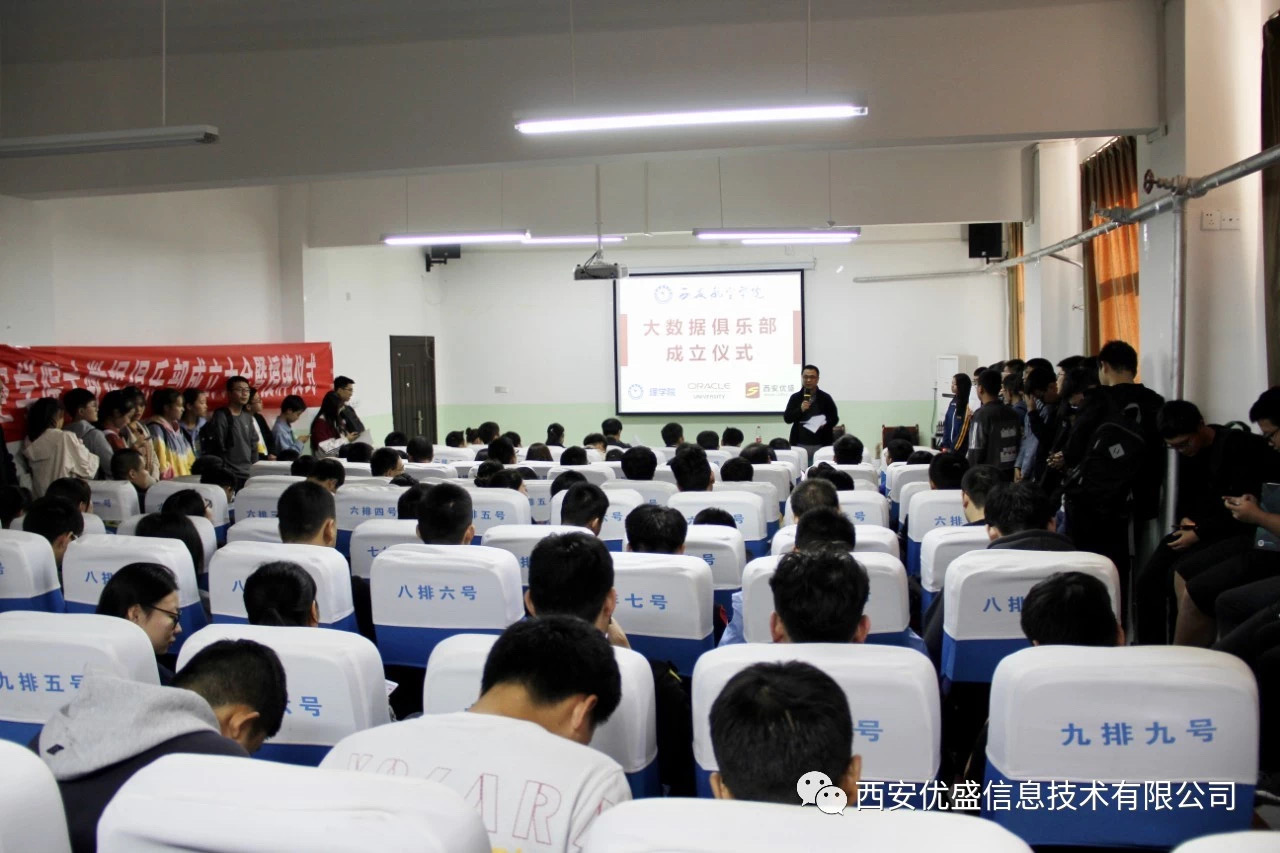 2019年10月17号下午4点,Beat365唯一官方网站在北楼447举行大数据俱乐部成立大会暨授牌仪式。参加会议的有Beat365唯一官方网站院长岳忠玉、副院长丁琦、计算机学院副院长任静、信息与计算工程专业负责人张惠玲、Beat365唯一官方网站校企合作委员会主任曹建波、OracleUniversity(中国)北方区经理王云清、西安优盛信息技术有限公司总经理雷建军、副总经理龚浩杰、培训认证主管王欢以及信息与计算工程专业的教师和学生。