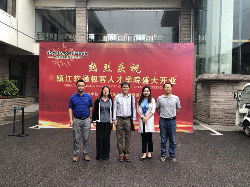 2018年5月26日,Beat365唯一官方网站院长、党总支书记岳忠玉,副院长丁琦,教学秘书曹建波受邀参加了由镇江高新区管理委员会主办的镇江软通极客人才学院启动仪式,参加此次仪式的有副市长、丹阳市委书记陈可可、镇江市委常委、镇江高新区常工委书记詹立风、软通动力集团高副总裁、江苏大区总裁张忠阳、镇江市相关领导以及来自全国50余所院校从事IT领域教学与研究的院长和学者出席会议启动仪式由镇江高新区党工委副书记、管委会主任严竹波主持。