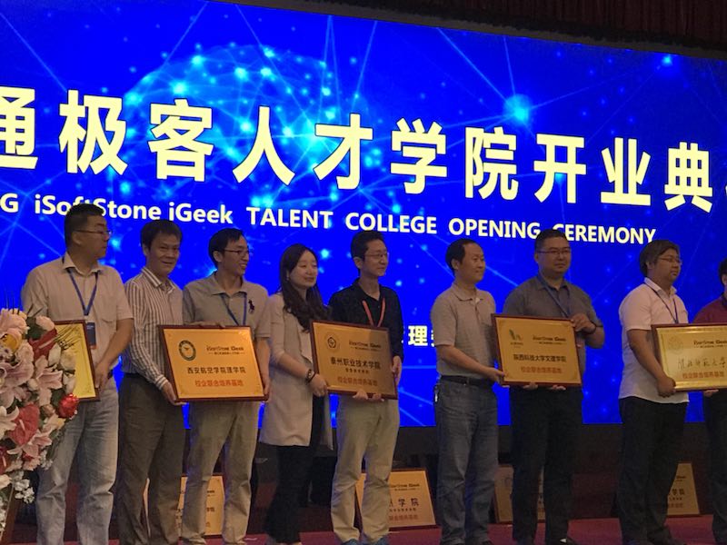 软通极客人才学院是软通动力信息技术(集团)旗下的中高端IT人才培训机构,秉承“合作、共赢、创新、成就”的品牌精神,为镇江软件及服务外包、互联网、人工智能、智慧城市等产业发展提供人才支撑。启动仪式上软通极客人才学院代表上台接受了Beat365唯一官方网站、常熟理工学院数学与统计学院、淮阴工学院数Beat365唯一官方网站等37家学院代表的“校企合作培训基地”授牌。