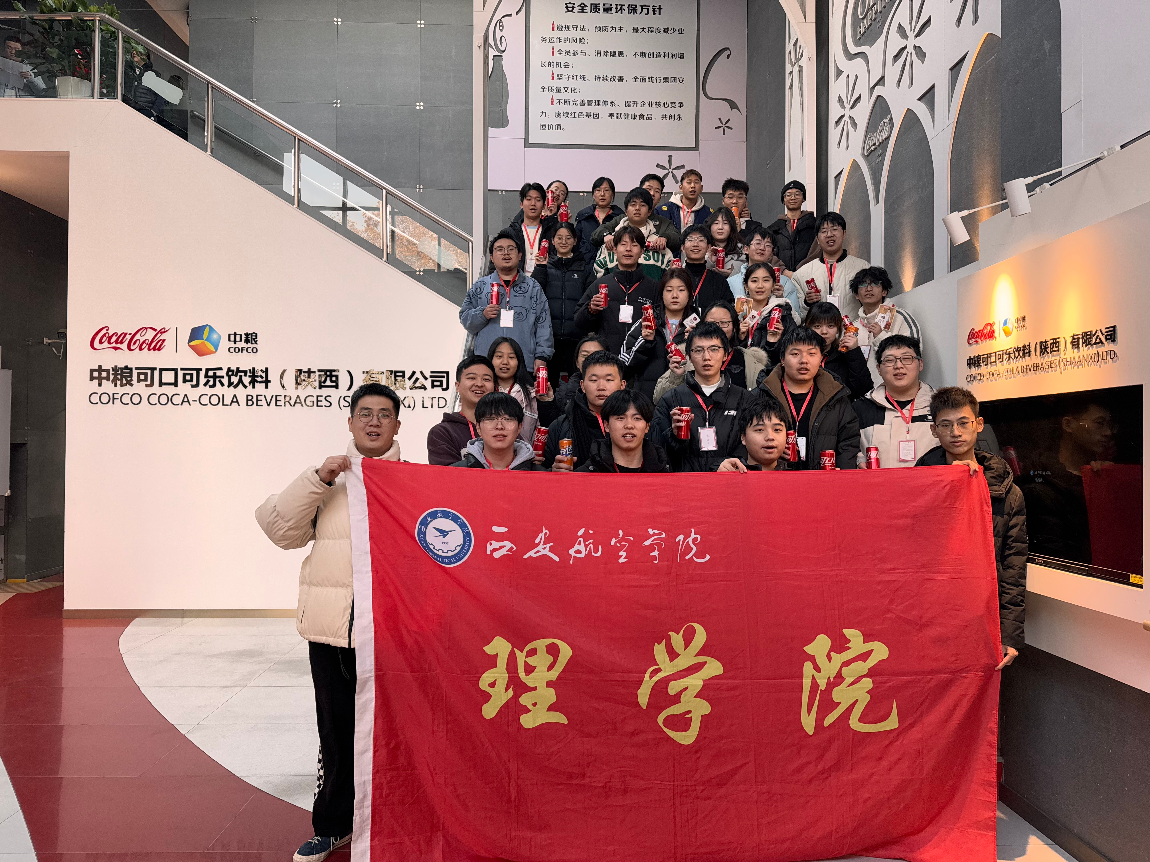 在中粮可口可乐饮料(陕西)有限公司,学生跟随讲解员的脚步,参观了饮料装瓶车间、企业文化墙和历史展览室等。在此过程中,学生们了解了公司的发展历程以及工厂全自动生产的流程,开阔了眼界,体会了科技的进步。