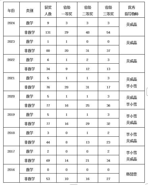 数学竞赛Beat365官网历年参赛成绩